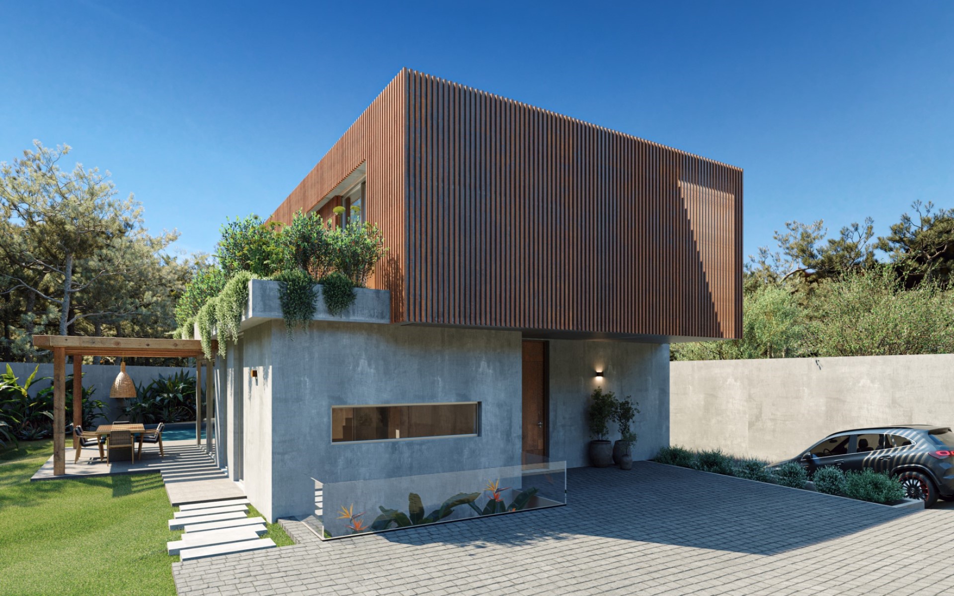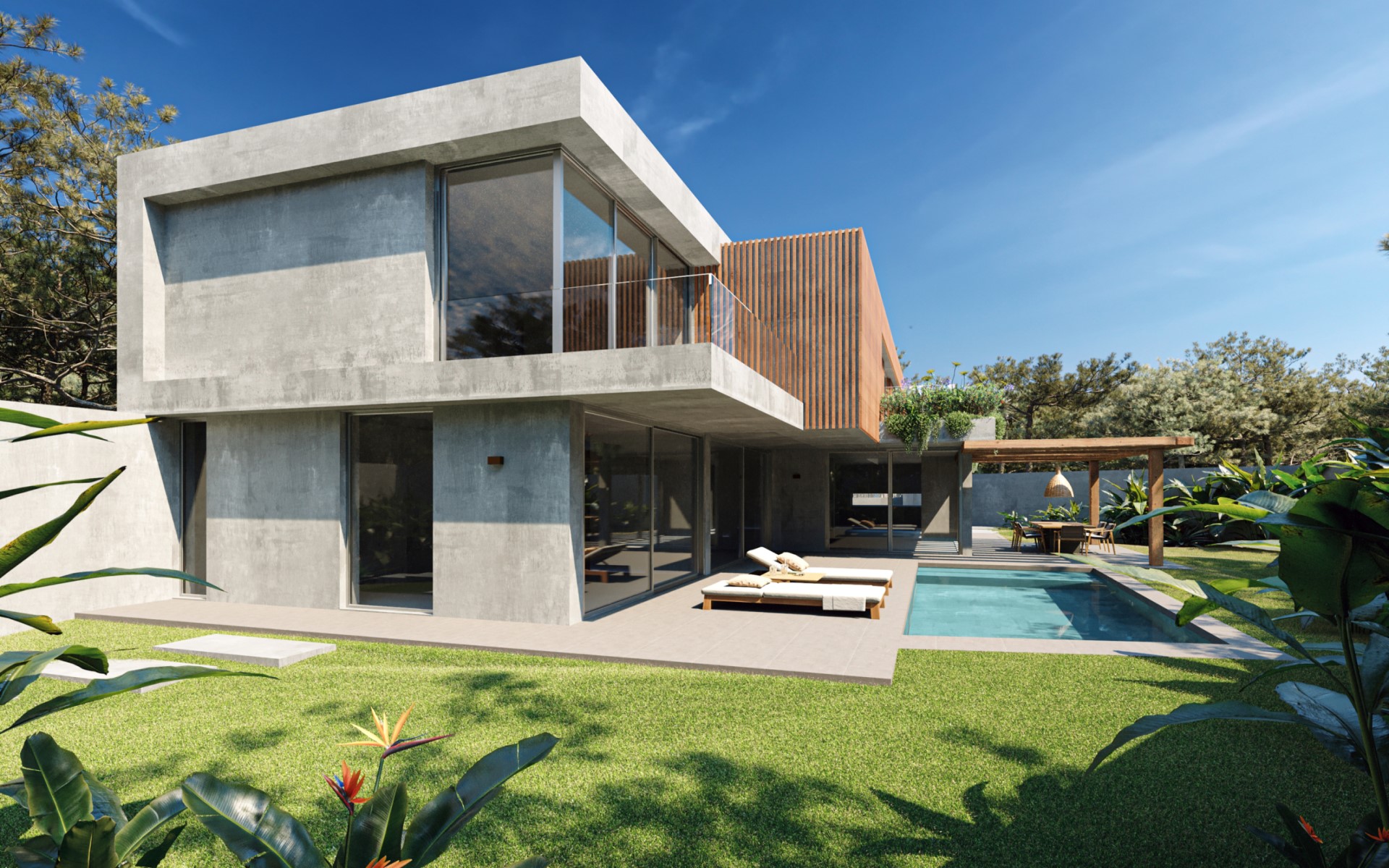 Localizada num bairro residencial na zona central da cidade de Cascais. A moradia insere-se num lote de 732m2, integrada num amplo jardim privativo com piscina que promove uma maior vivência ao ar livre. Inspirado em formas puras pela criação de dois volumes que se abraçam, o projecto tem o intuito de criar uma maior integração com a natureza, proporcionando um equilíbrio e fusão entre os espaços interiores exteriores. A concepção do projecto reflete uma constante preocupação ambiental e na seleção de materiais.