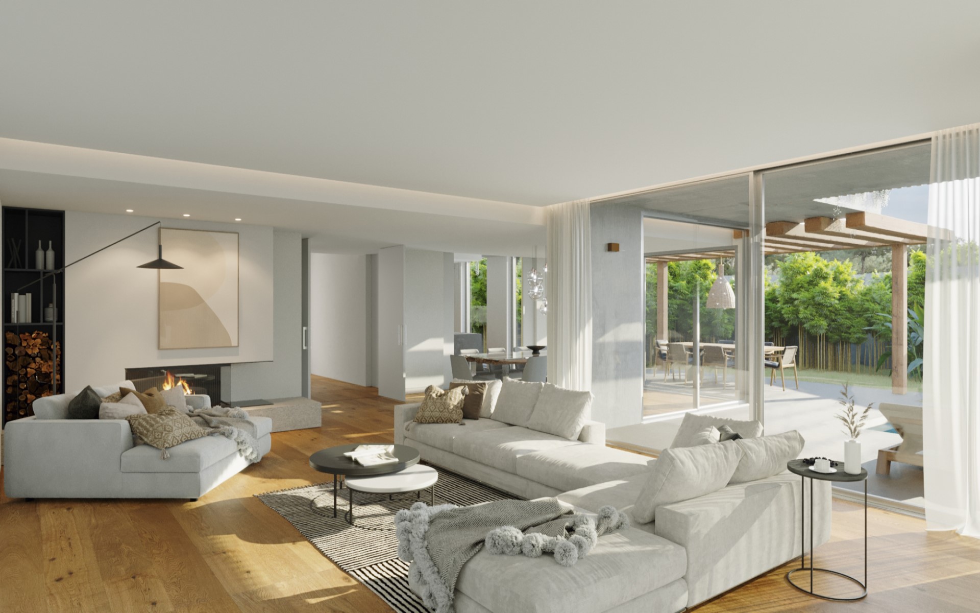 Construção nova de uma moradia uni-familiar situada numa zona residencial do centro de Cascais, obra prevista terminar em meados de 2025.